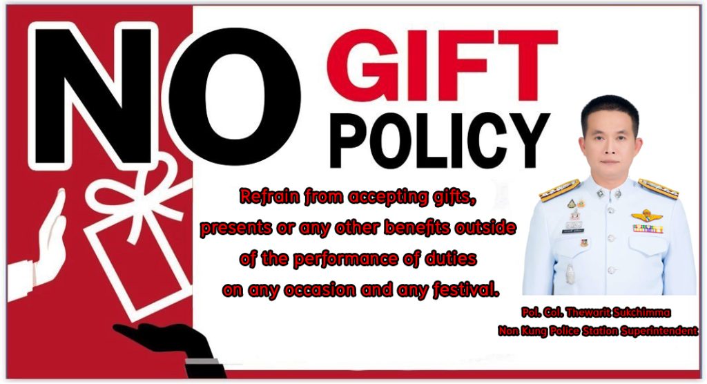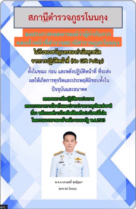 - ประกาศสำนักงานยุทธศาสตร์ตำรวจเรื่องเจตนารมณ์ที่จะไม่รับของขวัญหรือของกำนัลทุกชนิดจากการปฏิบัติหน้าที่