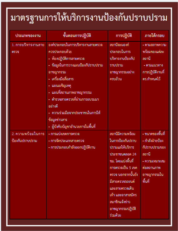 มาตรฐานการให้บริการงานป้องกันปราบปราม